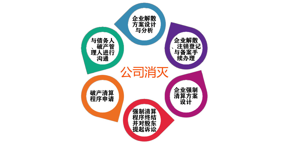 公司消滅涉及企業(yè)解散方案設計與分析,企業(yè)解散、注銷登記與備案手續(xù)辦理,企業(yè)解散清算,企業(yè)安置員工,與稅務、工商部門溝通;企業(yè)強制清算方案設計,企業(yè)強制清算申請,強制清算程序終結并對股東提起訴訟等;破產(chǎn)清算方案設計,破產(chǎn)清算財產(chǎn)調(diào)查,破產(chǎn)清算程序申請,債權登記,債權人會議,與債務人、破產(chǎn)管理人進行溝通等。